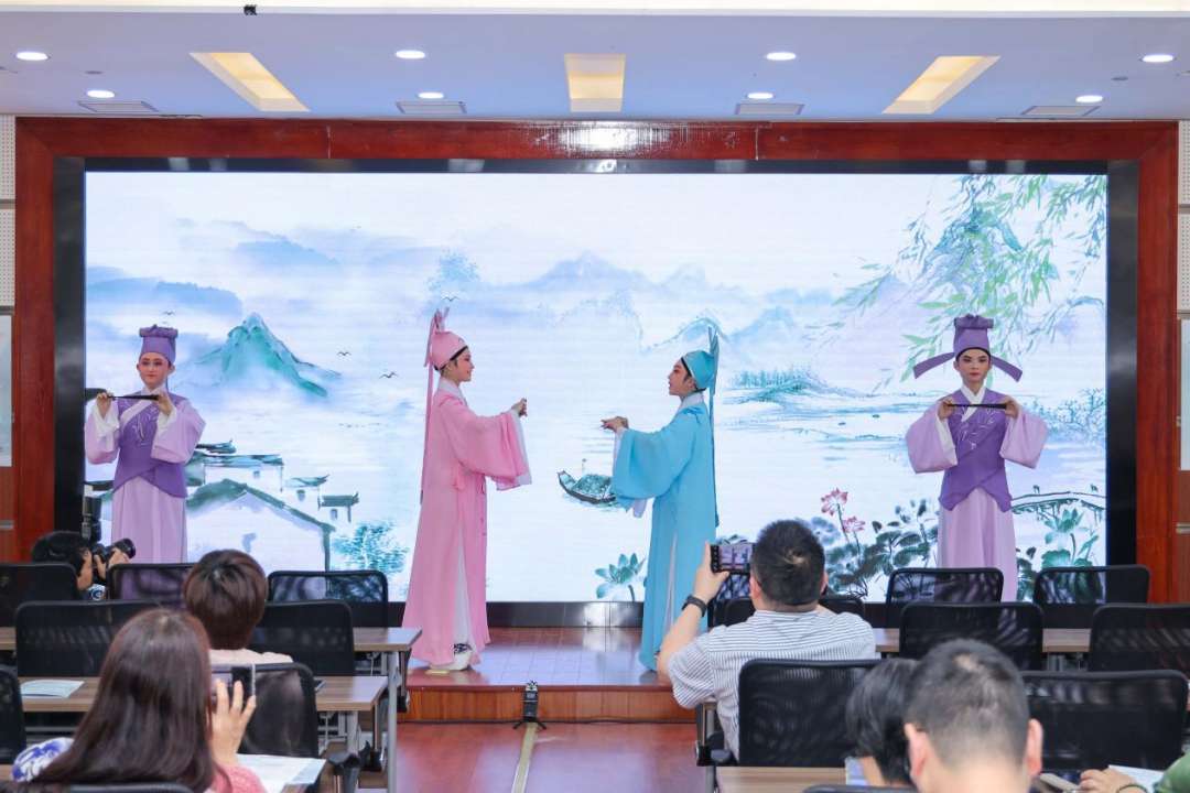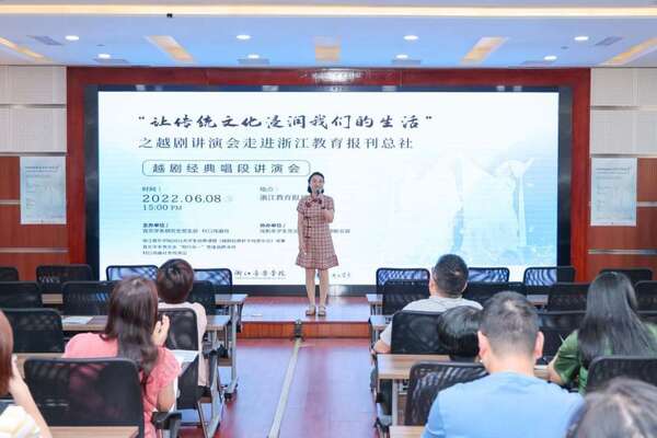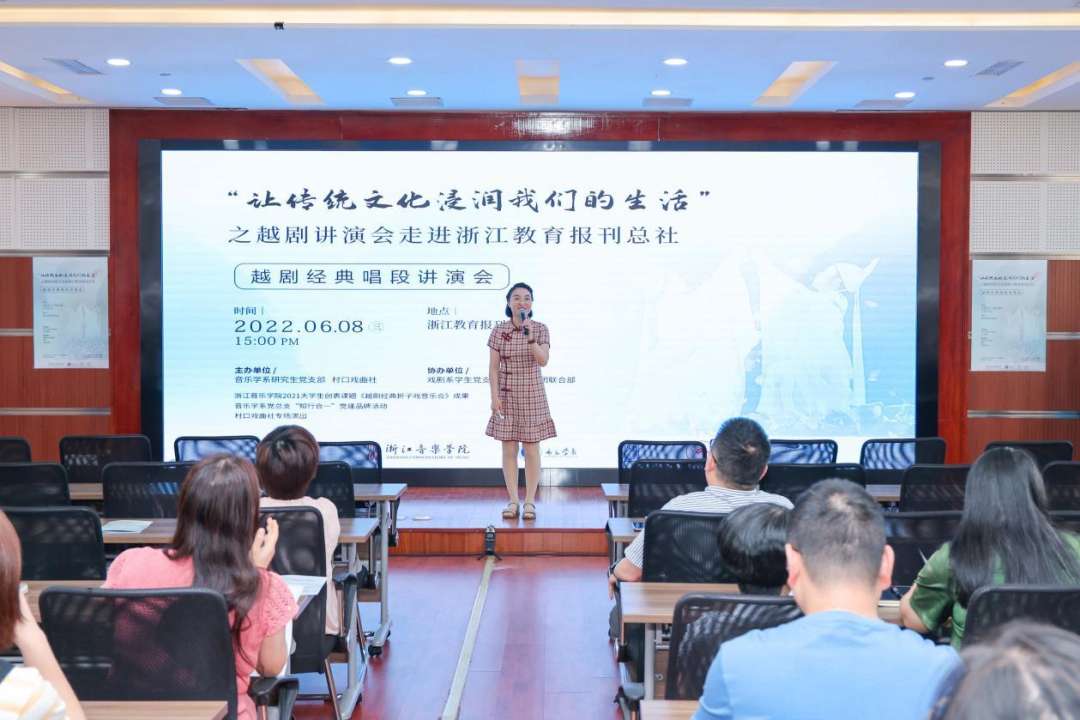 6月8日,浙江音樂學院音樂學系黨總支“知行合一”黨建品牌活動組織師生走進浙江教育報刊總社,以“讓傳統(tǒng)文化浸潤我們的生活”為主題,開展越劇經(jīng)典唱段講演活動。