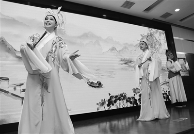 6月8日,由浙江音樂學(xué)院音樂學(xué)系研究生黨支部和村口戲曲社主辦的“知行合一”黨建品牌活動——越劇經(jīng)典唱段講演會在浙江教育報刊總社舉行。青年藝術(shù)家們將各種越劇流派表演和越劇講演、導(dǎo)賞相結(jié)合,送上了精彩紛呈的傳統(tǒng)文化大餐。圖為越劇《新梁祝·十八相送》表演現(xiàn)場。