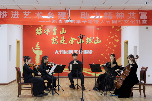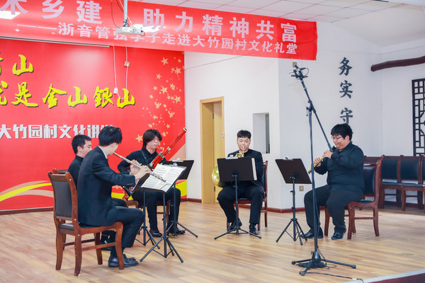 據(jù)縣融媒體中心下派大竹園村第一書記章丹介紹,本次演奏會(huì)開始前,學(xué)院與鄉(xiāng)村還進(jìn)行了一場(chǎng)“懇談會(huì)”,并達(dá)成校地合作意向,接下來(lái)雙方還將就如何開展合作進(jìn)行細(xì)化,并制定具體方案。對(duì)此,董德君解釋,藝術(shù)入鄉(xiāng)村,并非簡(jiǎn)單地在鄉(xiāng)村舉辦一場(chǎng)演奏會(huì)、舉行一場(chǎng)藝術(shù)活動(dòng),而是要用藝術(shù)的形式促進(jìn)鄉(xiāng)村的社會(huì)發(fā)展、文化發(fā)展、產(chǎn)業(yè)發(fā)展、生態(tài)建設(shè)和人的全面進(jìn)步。“共同富裕不僅需要物質(zhì)富裕,也要精神富裕,而藝術(shù)恰好可以實(shí)現(xiàn)兩者兼具。”他說(shuō),接下來(lái),學(xué)院將繼續(xù)用藝術(shù)來(lái)服務(wù)這里的村民,讓高雅音樂(lè)不“高冷”,也讓村民們能“忙時(shí)拿鋤頭、閑時(shí)彈樂(lè)器”。此外,學(xué)院還將與鄉(xiāng)村一道,更加充分地挖掘本地文化資源和自然資源,通過(guò)藝術(shù)賦能提升它們的附加值,實(shí)現(xiàn)物質(zhì)精神雙提升。