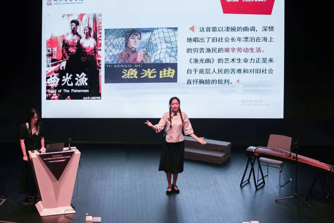 浙江音樂學(xué)院馬克思主義學(xué)院青年教師、浙江大學(xué)馬克思主義中國化研究碩士——徐施易現(xiàn)場主講。黨史是生動的教材,音樂是強大的共鳴,從紅船啟航,到 第十五次黨代會,從《南湖的船,黨的搖籃》,到《在希望的田野上》,每一部音樂作品都見證了歷史。