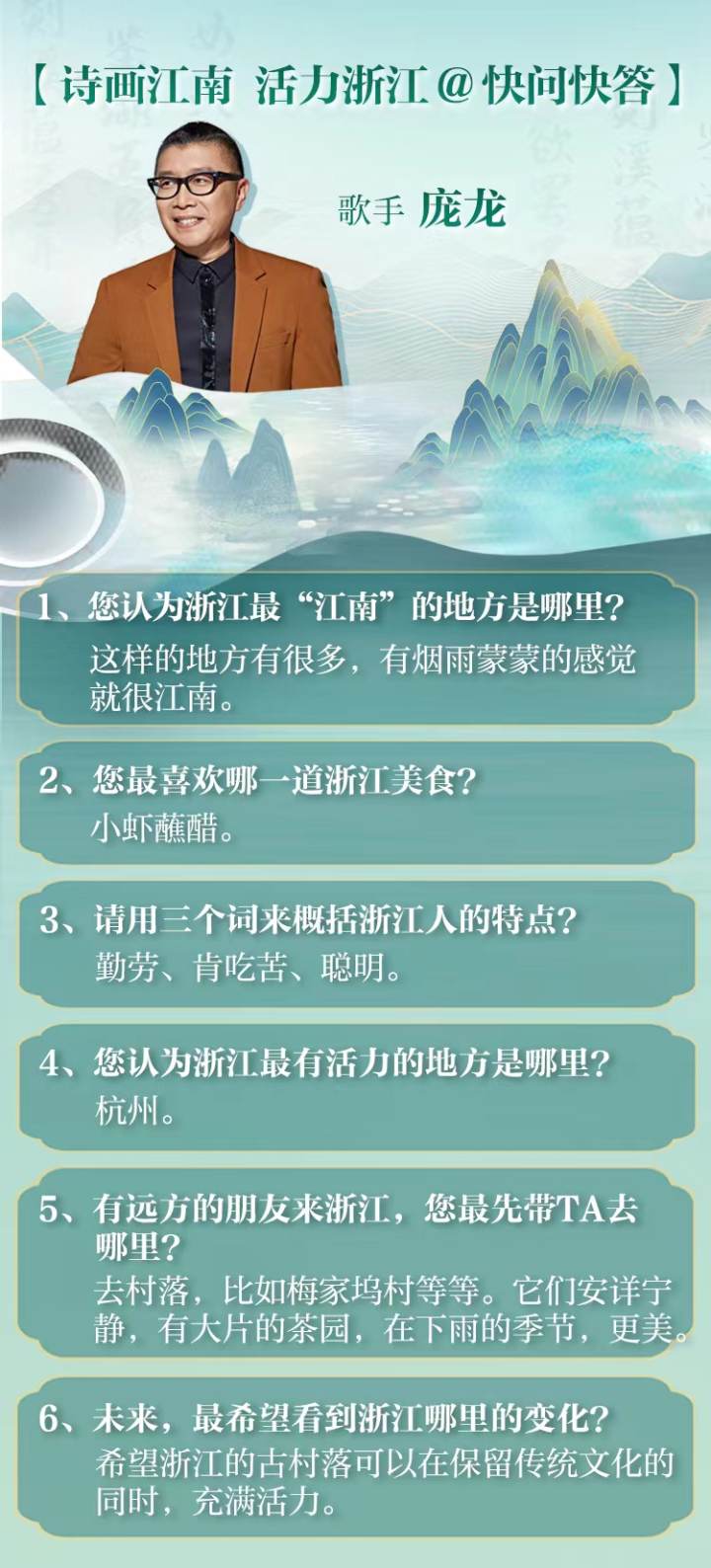 “要給浙江寫歌的想法其實很早就有了,《來杭州》恰好契合目前‘詩畫江南·活力浙江’這一浙江省域品牌主題詞,是我運氣好。”龐龍很謙虛。1998年,他就來過杭州,這里細(xì)雨朦朧中氤氳的青瓦屋脊,霧氣中西湖邊若隱若現(xiàn)的遠(yuǎn)山,是他心中的江南印象。