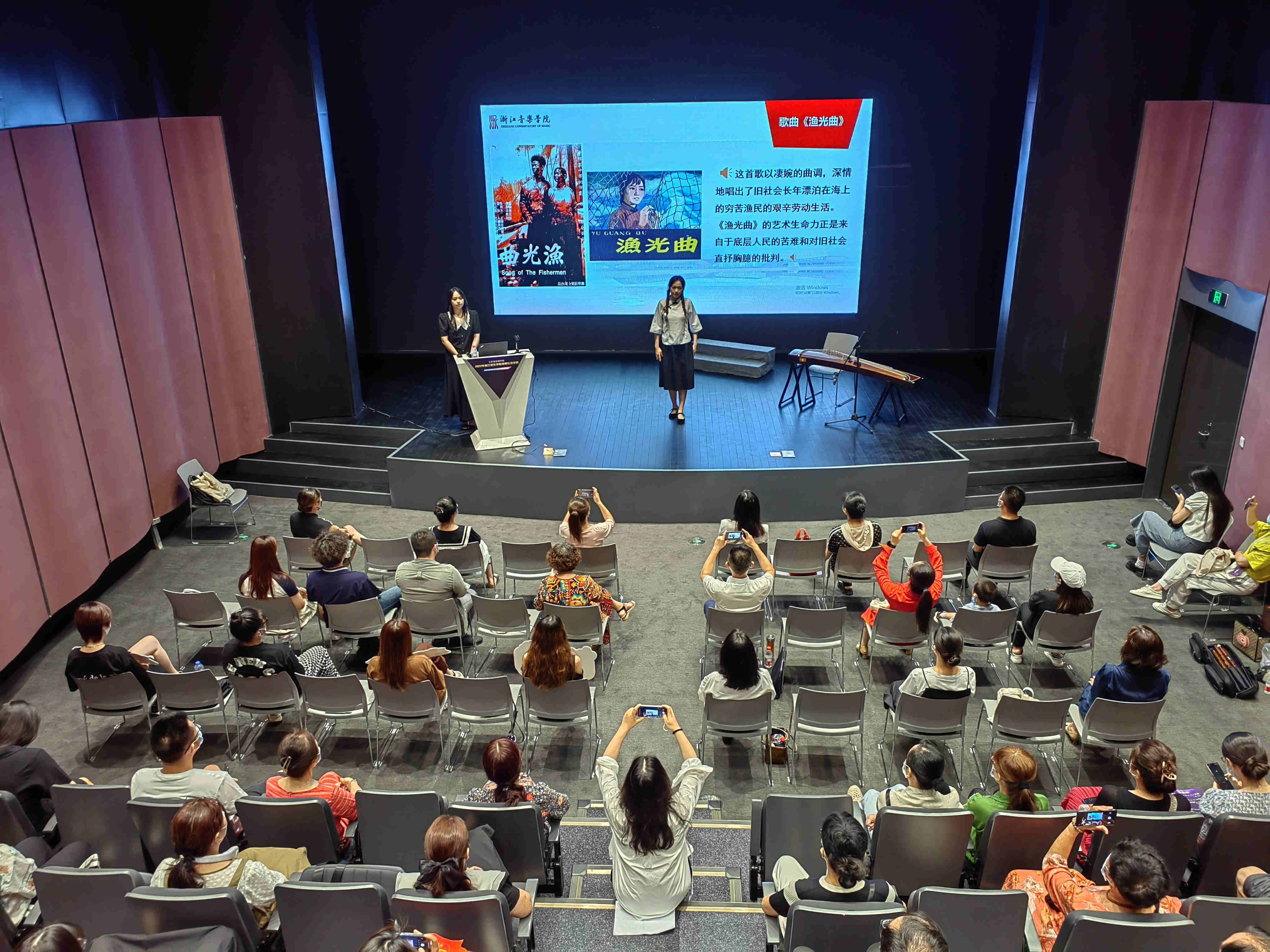 此外,浙音師生以紅色音樂作品為主打,與地方優(yōu)秀的理論宣講員合作,形成具有地域特色的音樂黨課。在余姚,師生配合余姚“舜江青語”理論宣講聯(lián)盟的青年宣講員,慷慨激昂地奏響了《第一交響序曲》;在臨平,師生與“新時代臨平青年說”宣講團合作《愛在吳越山水之間》等3部精彩的宣講作品,博得觀眾的陣陣叫好聲。