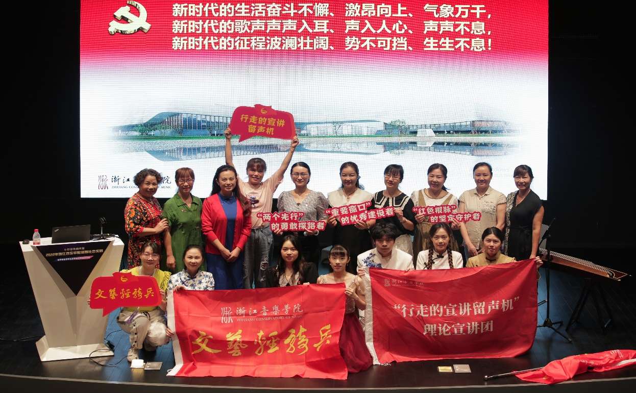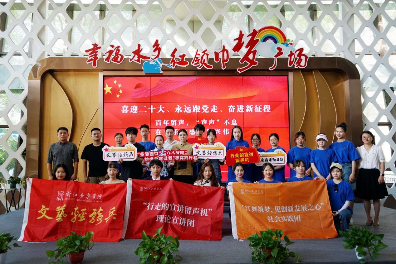 深入學(xué)習(xí)貫徹省第十五次黨代會(huì)精神是浙音“文藝輕騎兵”暑期社會(huì)實(shí)踐的一項(xiàng)重要內(nèi)容。浙音思政教師、青年團(tuán)干和學(xué)生代表組成了“行走的宣講留聲機(jī)”,通過創(chuàng)新理論宣講形式,深入生活、貼近群眾。“行走的宣講留聲機(jī)”先后在杭州、湖州、紹興、衢州、嘉興、寧波、麗水等地,面向機(jī)關(guān)干部、文化干部、中小學(xué)生、普通群眾開展10余次宣講,用形式多樣的藝術(shù)宣講將黨代會(huì)精神“聲”入人心。