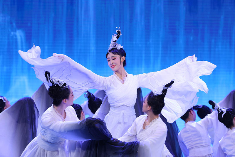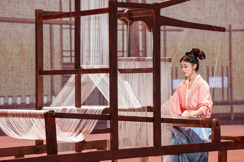 山水流轉(zhuǎn),鵲橋相會(huì),一舞夢(mèng)江南。8月4日晚20:00,浙江音樂學(xué)院舞蹈學(xué)院原創(chuàng)古典舞作品《織·夢(mèng)》受邀赴北京演出,在央視《古韻新聲》七夕主題節(jié)目中驚艷亮相。作品《織·夢(mèng)》改編自浙音原創(chuàng)舞蹈《白纻舞·在水一方》,展示了中國傳統(tǒng)的“女織”風(fēng)俗,頗具江南審美意象。舞臺(tái)上,青年教師李秋竹及喻佳穎、周瑩、林可欣、周李斯、潘莉麗、宋嘉霏、張寧、王施懿、錢怡靜、祁熙涵、曹睿穎、管筱歆、李一凡、吳易芝、卓雅15位同學(xué),將傳統(tǒng)紡織技藝融入舞蹈動(dòng)作,以紡織女工的夢(mèng)境作為載體,通過舞蹈與現(xiàn)代科技交融的形式,將織女的巧藝與對(duì)美滿生活的向往呈現(xiàn)在詩情畫意的山水意境之中,將南宋古畫《蠶織圖》緩緩展開,為觀眾帶來一場古今相通,美輪美奐的藝術(shù)體驗(yàn)。
