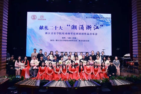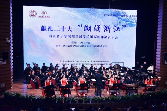 當(dāng)晚,獻(xiàn)禮二十大 “潮涌浙江”——浙江音樂學(xué)院炫動(dòng)揚(yáng)琴樂團(tuán)原創(chuàng)作品音樂會(huì)在長(zhǎng)沙音樂廳驚艷亮相,由浙江音樂學(xué)院炫動(dòng)揚(yáng)琴樂團(tuán)與湖南民族樂團(tuán)聯(lián)袂演出,中央音樂學(xué)院青年指揮家馬帥擔(dān)任指揮。本次演出的所有曲目均為知名作曲家、浙江音樂學(xué)院作曲與指揮系副教授王云飛委約創(chuàng)作,借助帶有浙江氣質(zhì)的詩書畫意象,展現(xiàn)浙江的深厚底蘊(yùn)和發(fā)展活力。