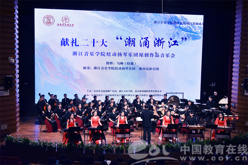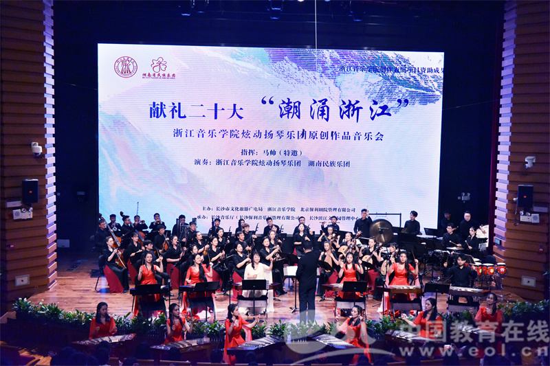 當(dāng)晚,獻(xiàn)禮二十大 “潮涌浙江”——浙江音樂學(xué)院炫動(dòng)揚(yáng)琴樂團(tuán)原創(chuàng)作品音樂會(huì)在長(zhǎng)沙音樂廳驚艷亮相,由浙江音樂學(xué)院炫動(dòng)揚(yáng)琴樂團(tuán)與湖南民族樂團(tuán)聯(lián)袂演出,中央音樂學(xué)院青年指揮家馬帥擔(dān)任指揮。
