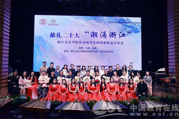 本次演出是浙江音樂學(xué)院喜迎二十大的具體行動(dòng),充分展現(xiàn)了學(xué)院教書育人、藝術(shù)創(chuàng)作的豐碩成果。據(jù)悉,炫動(dòng)揚(yáng)琴樂團(tuán)的演奏員均為浙音師生,他們利用暑假,先后在福建、山東、湖南開展巡演。