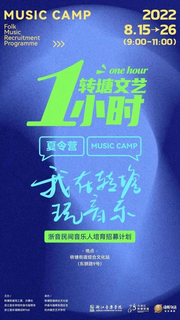 “我在轉(zhuǎn)塘玩音樂——浙音民間音樂人培育計劃”是由轉(zhuǎn)塘街道、浙江音樂學院、浙江音樂調(diào)頻動聽968、杭州德藝藝術(shù)學校聯(lián)合開展的“轉(zhuǎn)塘文藝1小時”夏令營特輯活動。