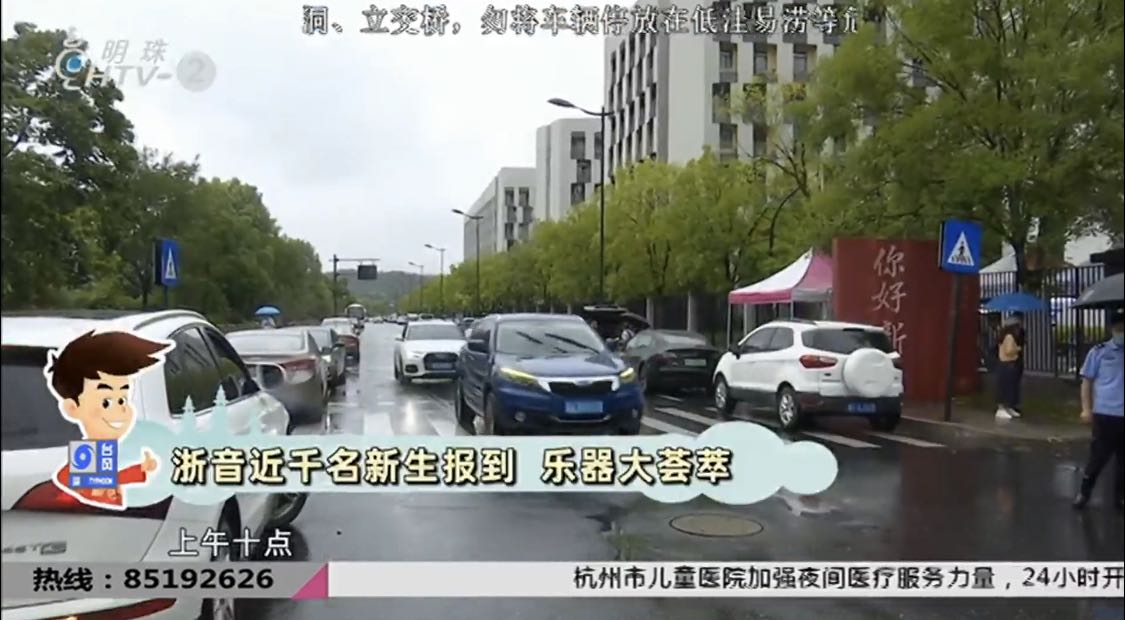 今天,大風(fēng)大雨中,浙江音樂學(xué)院的大一新生來(lái)報(bào)到了。除了行李,還有不少人帶上了隨身寶貝——自己的樂器。整個(gè)報(bào)到場(chǎng)面,看起來(lái)就像是樂器大薈萃。