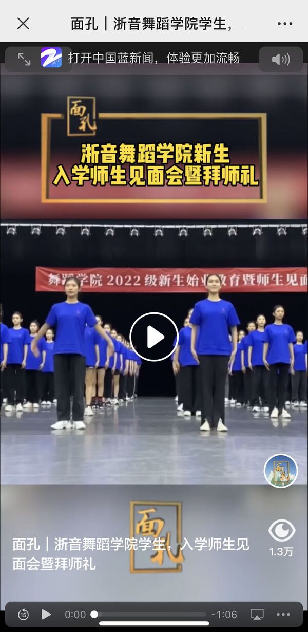 浙江衛(wèi)視·面孔:浙音舞蹈學(xué)院新生入學(xué)師生見面會暨拜師禮