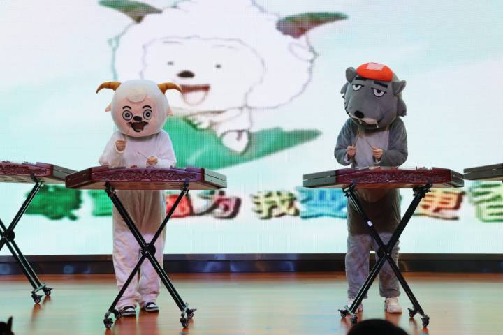 課堂上,經(jīng)典的動畫跨越時空,來到這里——聰明的喜洋洋和努力的灰太狼、華彩絢麗的艾莎公主,黑貓警長和一只耳,揚琴演奏貫穿的經(jīng)典動畫讓大家一同沉浸其中,看著孩子們癡迷的神情,仿佛自己就是那行俠仗義、足智多謀的主人公,一顰一笑都隨之而動。