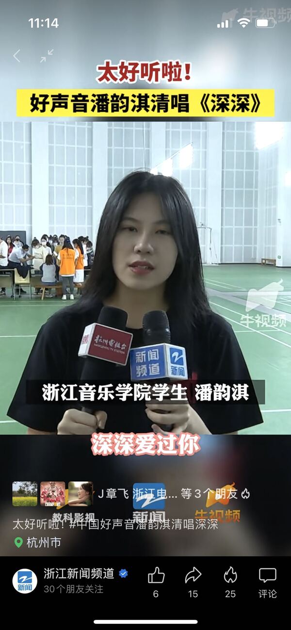 浙江新聞?lì)l道視頻號(hào):太好聽啦!好聲音潘韻淇清唱《深深》