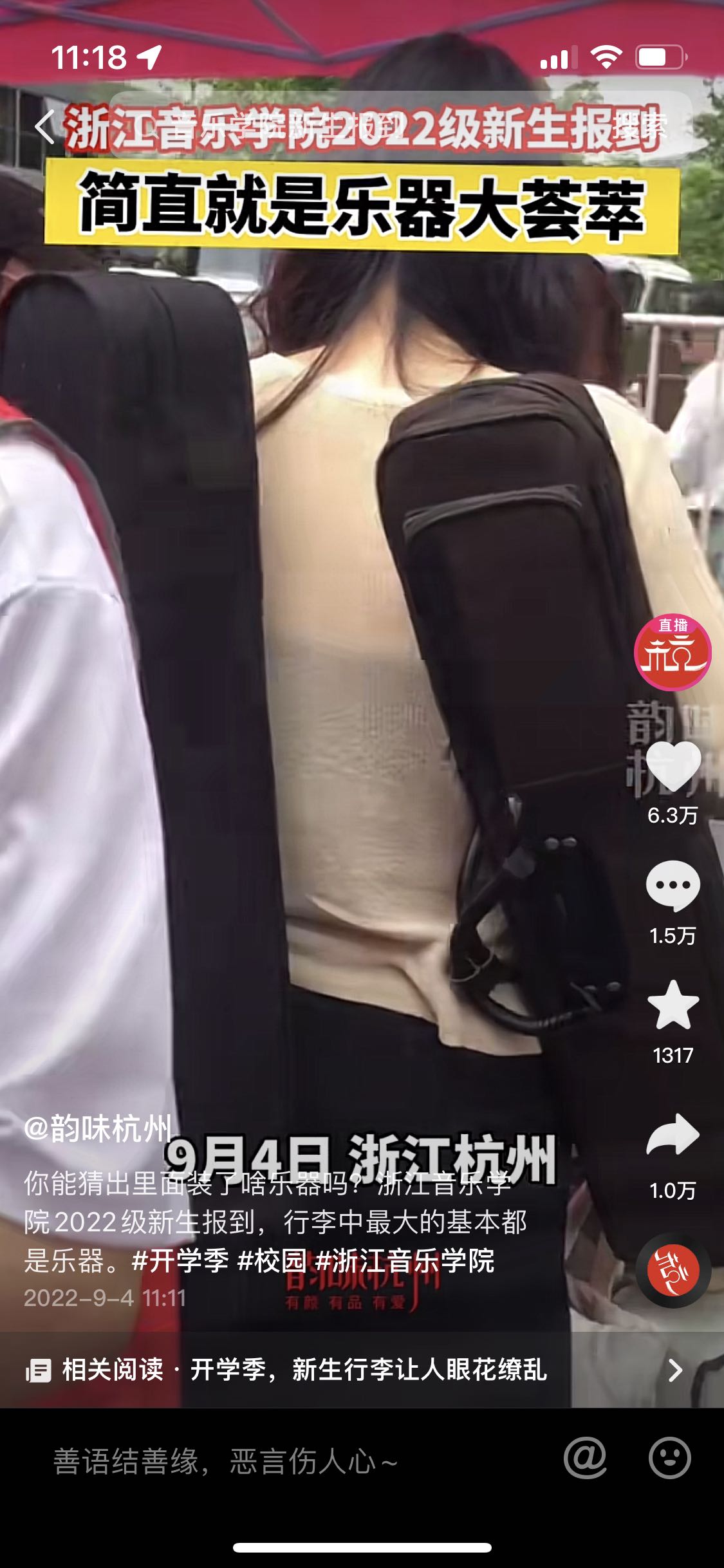 韻味杭州:浙江音樂(lè)學(xué)院2022級(jí)新生報(bào)到 簡(jiǎn)直就是樂(lè)器大薈萃