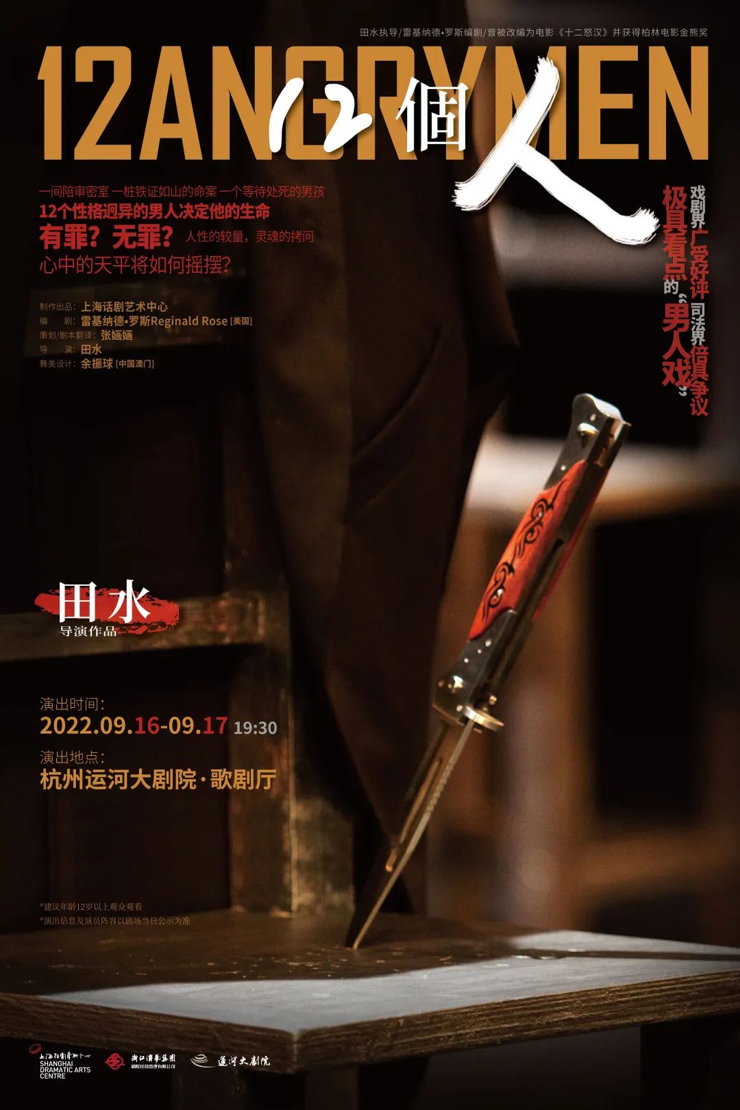 活動(dòng)簡(jiǎn)介:2010年,由上海話劇藝術(shù)中心制作出品、上海話劇藝術(shù)中心導(dǎo)演田水執(zhí)導(dǎo)的話劇《12個(gè)人》在滬首演,贏得票房和口碑,并引起話劇界、司法界熱議。清一色男演員、短兵相接的臺(tái)詞對(duì)抗、層層深入的案件推理、充滿爆發(fā)力的表演方式……使得這部作品收到大批話劇觀眾追捧。
