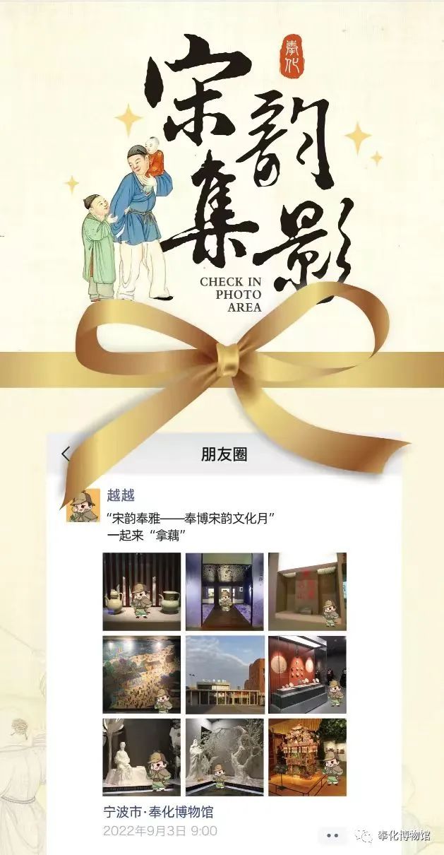 活動(dòng)簡(jiǎn)介:探尋博物館深處的“宋韻”,與宋代元素展品合影,發(fā)送至微信朋友圈,可至前臺(tái)領(lǐng)取時(shí)節(jié)禮品一份。