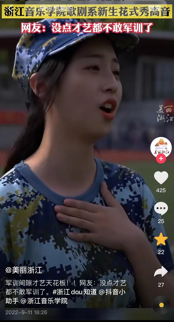 美麗浙江:軍訓間隙才藝天花板?。?!浙江音樂學院歌劇系新生花式秀高音