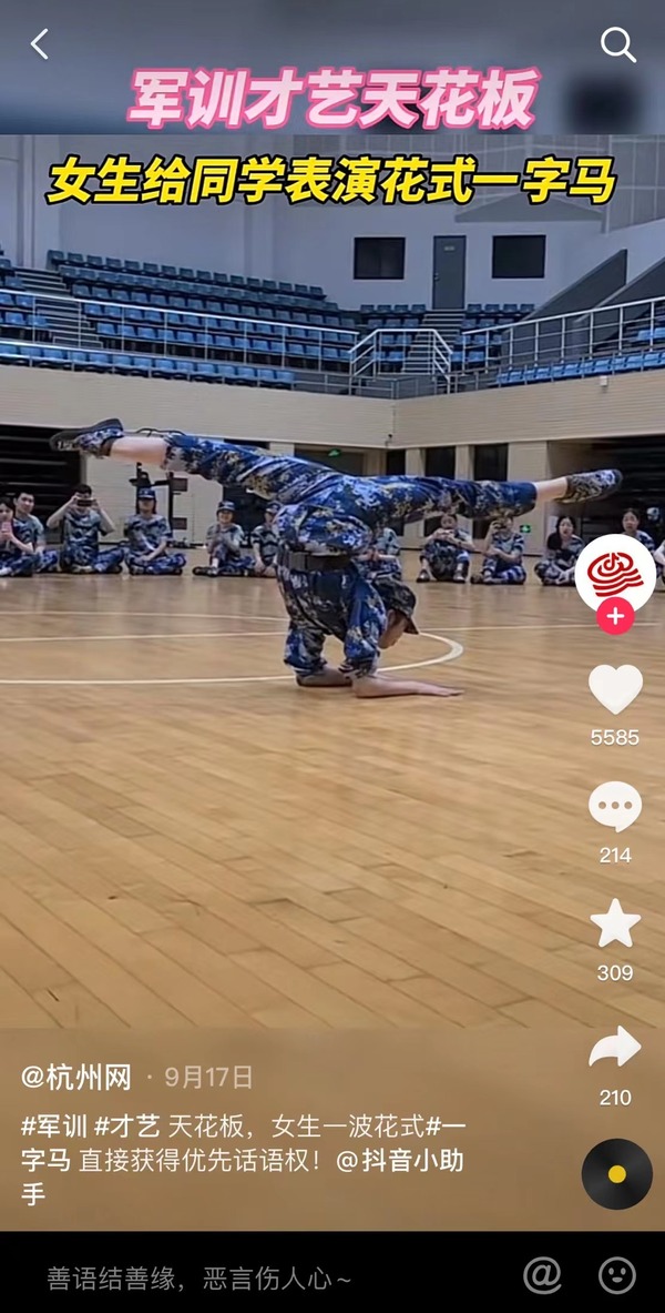 杭州網(wǎng):軍訓(xùn)才藝天花板 女生給同學(xué)表演花式一字馬