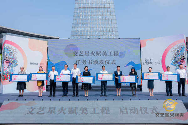 在啟動儀式現(xiàn)場,有關領導向組織單位及首批試點場所單位代表頒發(fā)工程卷軸,為文藝志愿者分隊授旗。文藝志愿者代表共同宣讀了倡議書,表示將當好“星火傳遞手”,爭做“兩個先行”講述人,讓“文藝星火”點亮之江大地。“文藝星火賦美”工程專屬LOGO也同步向社會發(fā)布。