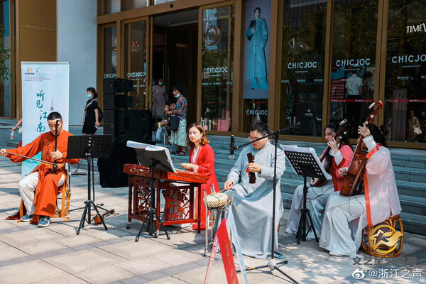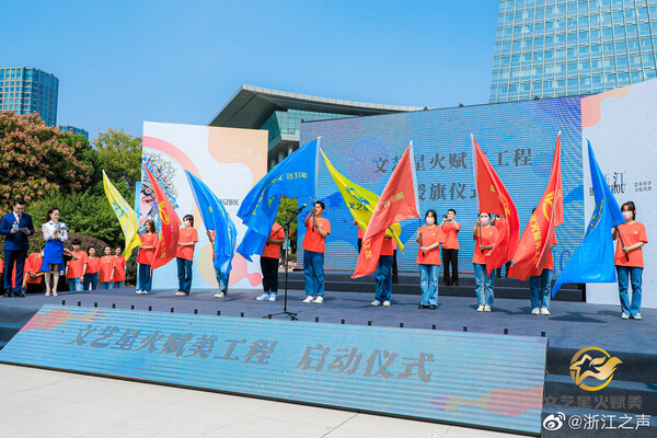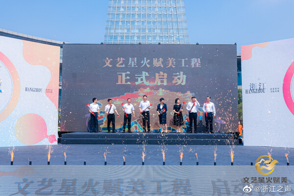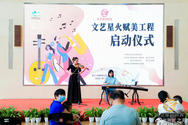 9月30日上午,“文藝星火賦美”工程啟動儀式在杭州舉行,場所分布于湖濱步行街、清河坊步行街、國大城市廣場、運河上街、西城廣場、江南大道、城市陽臺、柳浪聞鶯公園等15個重點商圈、文化特色街區(qū)、社區(qū)文化空間和旅游景區(qū),中國絲綢博物館、浙江圖書館、浙江美術(shù)館、浙江省博物館、浙江自然博物館等5大省級場館也同步協(xié)同推進。該工程在杭州試點的基礎(chǔ)上將在全省范圍有序推開。展演在多點位形式各異,既有鋼琴、小提琴、薩克斯等西洋樂演奏,也有二胡、琵琶、竹笛、古箏等民樂展示,還有舞蹈、魔術(shù)表演、流行樂彈唱、古籍裝幀等內(nèi)容。展演以小分隊為主,不求藝演規(guī)模,重在賦美城市氣質(zhì)、營造文化生態(tài)。