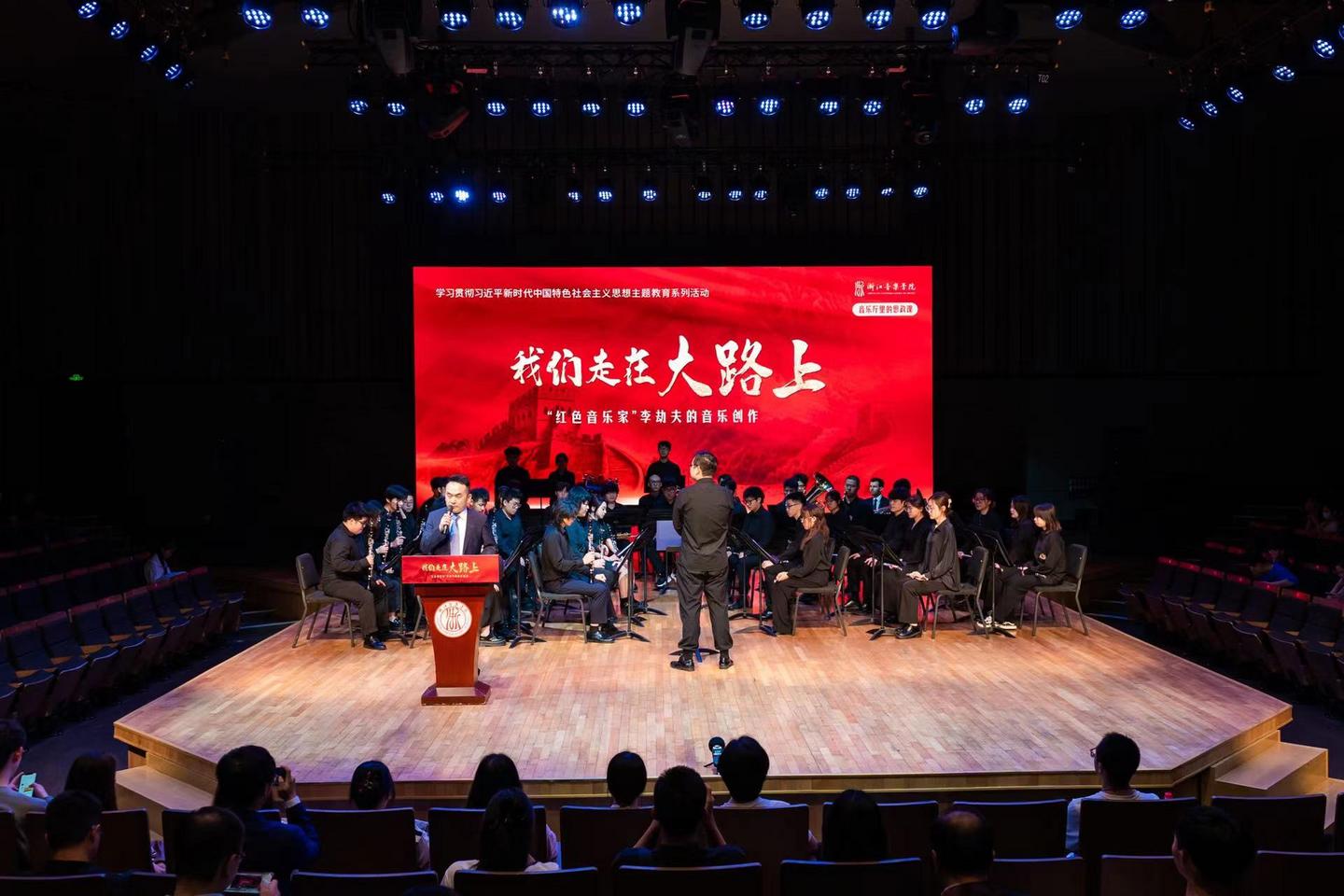 5月4日,正值五四青年節(jié)之際,浙江音樂學(xué)院在現(xiàn)代音樂廳舉辦了一堂別開生面、獨(dú)具一格的“思政課”。學(xué)院邀請了中國音樂家協(xié)會管樂學(xué)會副主席,中國音協(xié)管樂學(xué)會長笛專業(yè)委員會副會長魏煌教授為師生們帶來“我們走在大路上——‘紅色音樂家’李劫夫的音樂創(chuàng)作”的精彩講座。