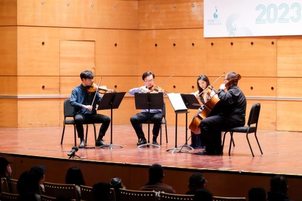隨后,中國當代作曲家張千一的《A調(diào)弦樂四重奏》歡快奏響,是其最為著名的室內(nèi)樂代表作品之一。整部作品充滿青春活力,節(jié)奏鮮活明快,情感真摯動人。四位演奏家以精湛的演奏技巧、細膩的情感表達,在獨立與統(tǒng)一、和諧與對比中,凸顯了作品的魅力。
