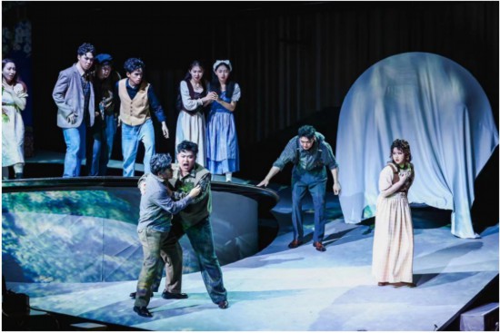意大利喜歌劇《唐·帕斯夸萊》是歌劇大師多尼采蒂的杰作。該劇描寫了“大款”帕斯夸萊的一段黃昏戀,故事幽默風(fēng)趣,音樂生動(dòng)優(yōu)美。在這部劇中,多尼采蒂為女高音角色諾莉娜譜寫了諸多優(yōu)美的旋律,其中詠嘆調(diào)“少女的秋波”堪稱女高音的“試金石”。當(dāng)晚飾演諾莉娜一角的女高音崔穎釵嗓音柔美悠揚(yáng),情感表達(dá)細(xì)膩真實(shí),用歌聲將諾莉娜憧憬愛情、享受青春時(shí)光的內(nèi)心情感表現(xiàn)得淋漓盡致。與諾莉娜陷入熱戀的埃內(nèi)斯托一角由男高音劉一鳴飾演,他的表演同樣打動(dòng)人心。本劇中的“帕老爺”(帕斯夸萊)由田昊巖出演,他音色漂亮純正、語言規(guī)范、唱演俱佳,被認(rèn)為是當(dāng)晚《唐·帕斯夸萊》里“最亮的一顆星”。劇中的“喜劇擔(dān)當(dāng)”馬拉泰斯塔由李天昊出演,這一角色在舞臺(tái)上插科打諢、出盡詭計(jì),喜劇效果頗佳。
