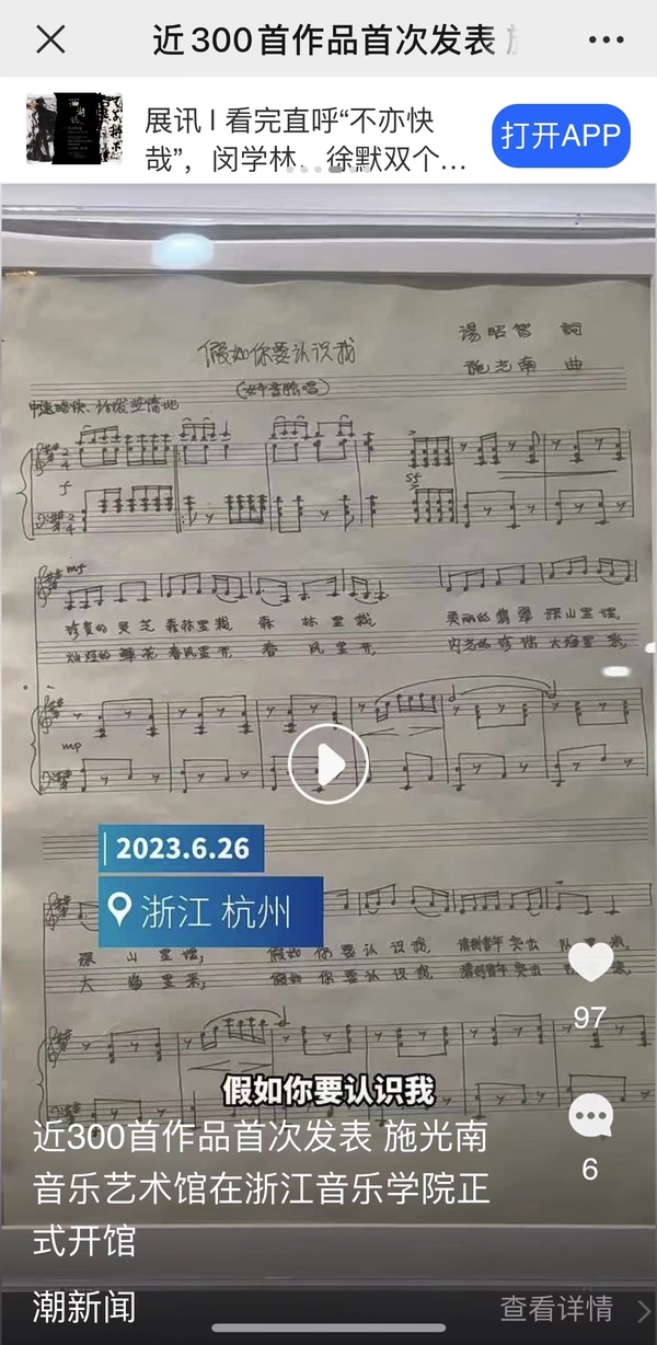 潮新聞:近300首作品首次發(fā)表 施光南音樂藝術(shù)館在浙江音樂學(xué)院正式開館