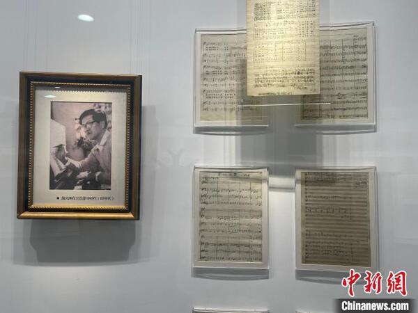 圖為施光南音樂藝術館中展示的施光南照片及其創(chuàng)作手稿