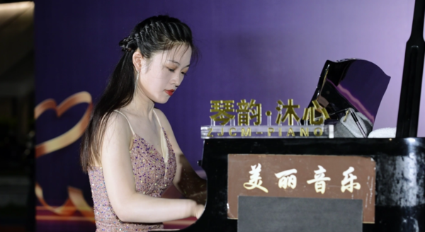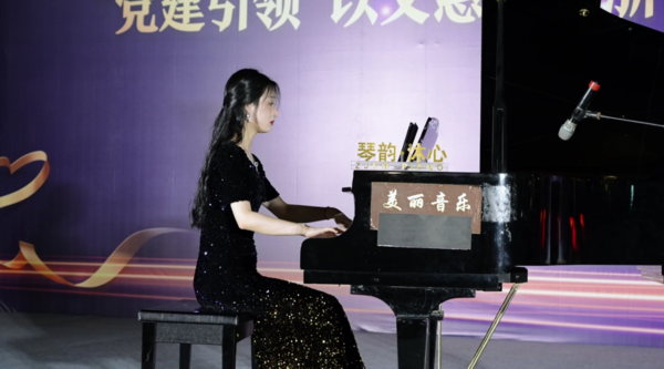 活動現(xiàn)場,浙江音樂學(xué)院鋼琴系“文藝輕騎兵”帶來《彩云追月》《唱支山歌給黨聽》《春舞》等多首耳熟能詳?shù)臉非?/p>