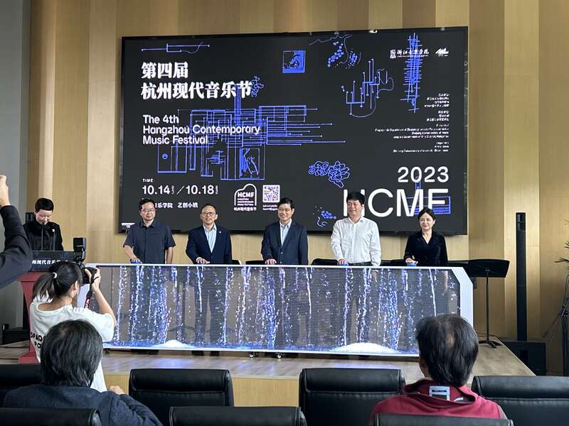 10月14日,2023第四屆杭州現(xiàn)代音樂節(jié)新聞發(fā)布會暨開幕式現(xiàn)場,與會嘉賓共同啟動第四屆杭州現(xiàn)代音樂節(jié)。 中青報·中青網(wǎng)見習記者 賈驥業(yè)/攝