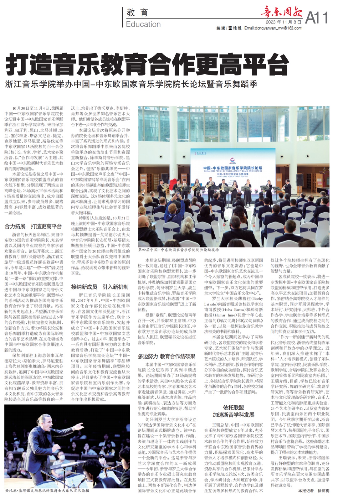 音樂周報(bào):打造音樂教育合作更高平臺(tái)|浙江音樂學(xué)院舉辦中國-中東歐國家音樂學(xué)院院長論壇暨音樂舞蹈季