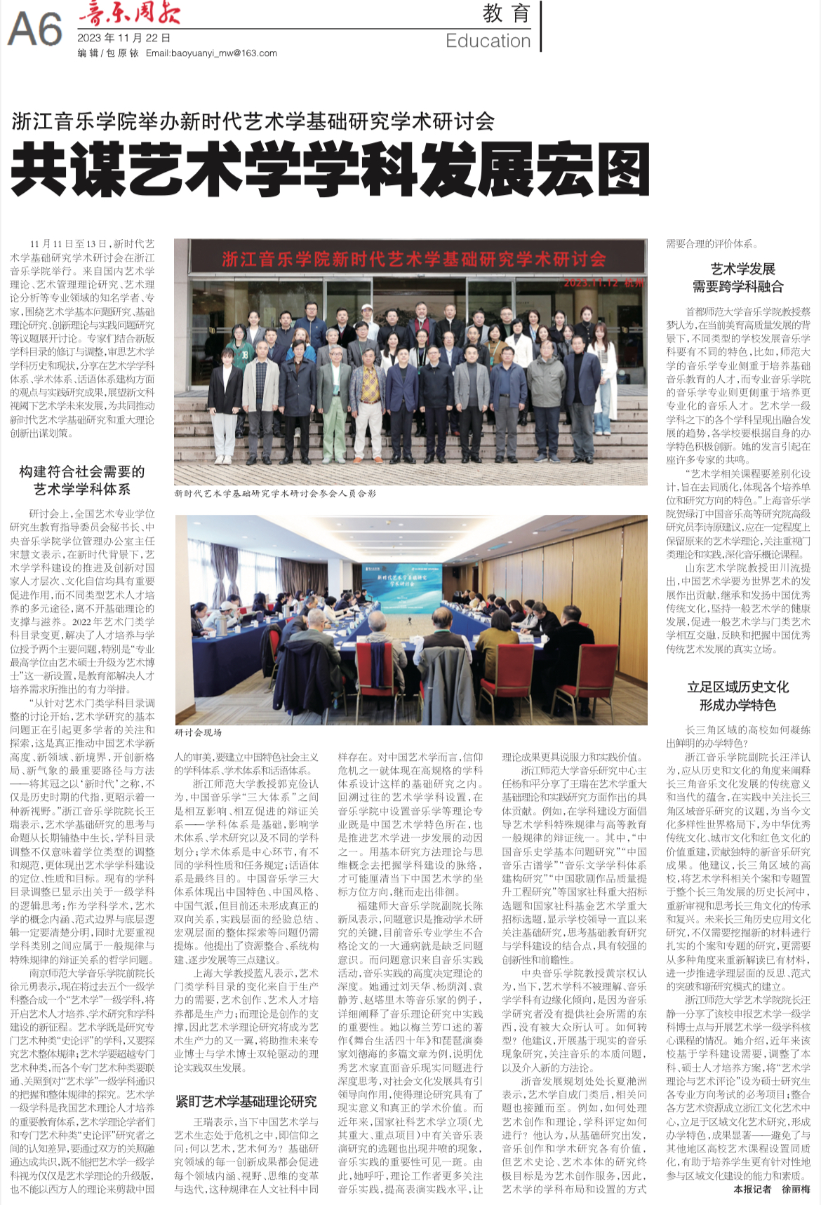 音樂周報(bào):浙江音樂學(xué)院舉辦新時(shí)代藝術(shù)學(xué)基礎(chǔ)研究學(xué)術(shù)研討會(huì)|共謀藝術(shù)學(xué)學(xué)科發(fā)展宏圖