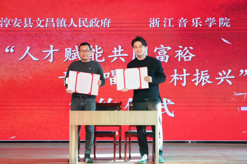 “希望雙方充分發(fā)揮各自優(yōu)勢,分享工作資源、交流工作經(jīng)驗,以多方位、系列化的互動,促進雙方共同成長,形成優(yōu)勢互補、資源共享、共建共榮的黨建發(fā)展新格局,助力文屏未來鄉(xiāng)村的道路更加耀眼。”在黨建聯(lián)建簽約儀式上,文昌鎮(zhèn)黨委書記兼高鐵新區(qū)管委會主任方勝杰這樣說到。浙江音樂學(xué)院國樂系與淳安縣文屏村的黨建聯(lián)建,不僅是踐行“八八戰(zhàn)略”決策部署,推動“千萬工程”實施的一次重要嘗試,還是將中華優(yōu)秀國樂文化與文屏村的生態(tài)文明建設(shè)緊密結(jié)合的一次有力實踐。國樂學(xué)子將不忘初心,繼續(xù)前進,把專業(yè)學(xué)習(xí)和鄉(xiāng)村振興緊密結(jié)合起來,牢記青年的責任與使命,貢獻青春和智慧。