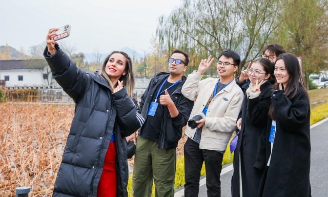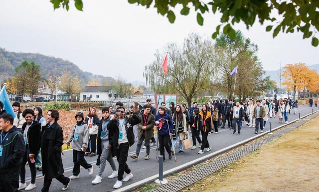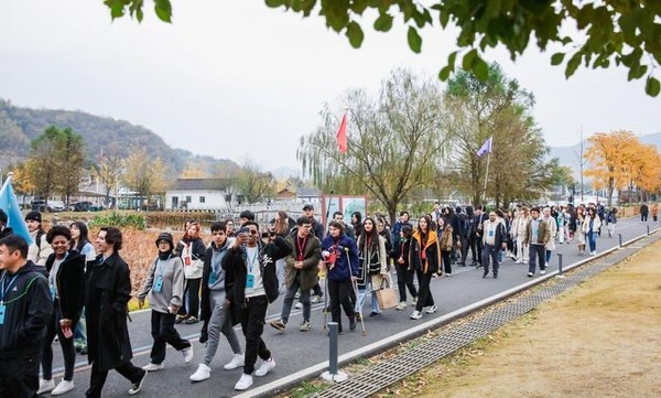 On November 26, 'A Field Visit to the Beautiful Countryside' for foreign young people was held in Yucun Village of Anji County. The event was co-sponsored by Zhejiang Conservatory of Music and the People's Government of Anji County. More than 250 international students from 59 countries participated. They are students from 10 universities in Zhejiang Province, including Zhejiang University, China Academy of Art, Zhejiang University of Technology, Hangzhou Dianzi University, Zhejiang Gongshang University, Zhejiang Chinese Medical University, Zhejiang A&F University, Zhejiang University of Science & Technology, Hangzhou Normal University, and Zhejiang Conservatory of Music.