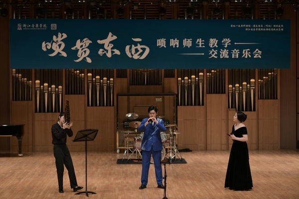 12月4號(hào),由浙江音樂(lè)學(xué)院國(guó)樂(lè)系、上海音樂(lè)學(xué)院民樂(lè)系以及貴州大學(xué)音樂(lè)學(xué)院音樂(lè)系聯(lián)合舉辦的“嗩貫東西”——嗩吶師生教學(xué)交流音樂(lè)會(huì)在浙江音樂(lè)學(xué)院音樂(lè)廳精彩上演。