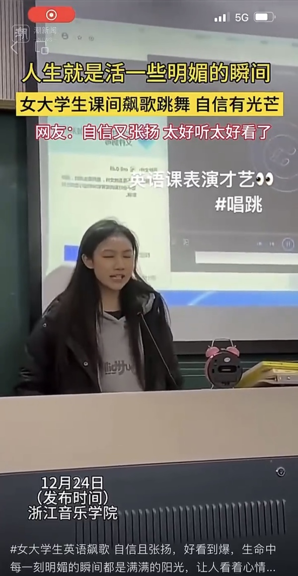 近日,浙江音樂(lè)學(xué)院一位女大學(xué)生在課間飆歌跳舞的視頻傳遍了全網(wǎng)。