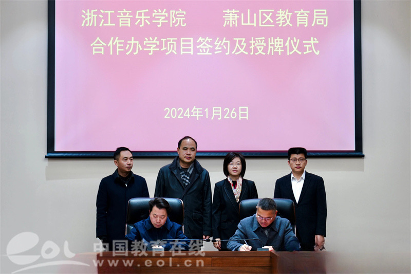 近日,浙江音樂學(xué)院與蕭山區(qū)教育局合作辦學(xué)項(xiàng)目簽約及授牌儀式舉行。浙江音樂學(xué)院黨委副書記王均寅,蕭山區(qū)副區(qū)長楊新程,區(qū)教育局黨委書記、局長章建平,區(qū)教育局副局長董柯鋒,以及浙江音樂學(xué)院、區(qū)教育局、蕭山五中等相關(guān)負(fù)責(zé)人參加儀式。