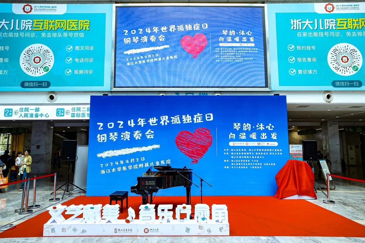 當日,由浙江音樂學院、浙江大學醫(yī)學院附屬兒童醫(yī)院(下稱浙大兒院)主辦,浙江音樂學院鋼琴系、教育基金會、學生工作部以及浙江大喇叭特殊兒童關(guān)愛中心共同承辦的鋼琴演奏會在浙大兒院門診大廳和病房舉行。鋼琴會有一個好聽的名字“琴韻·沐心 向溫暖出發(fā)”。