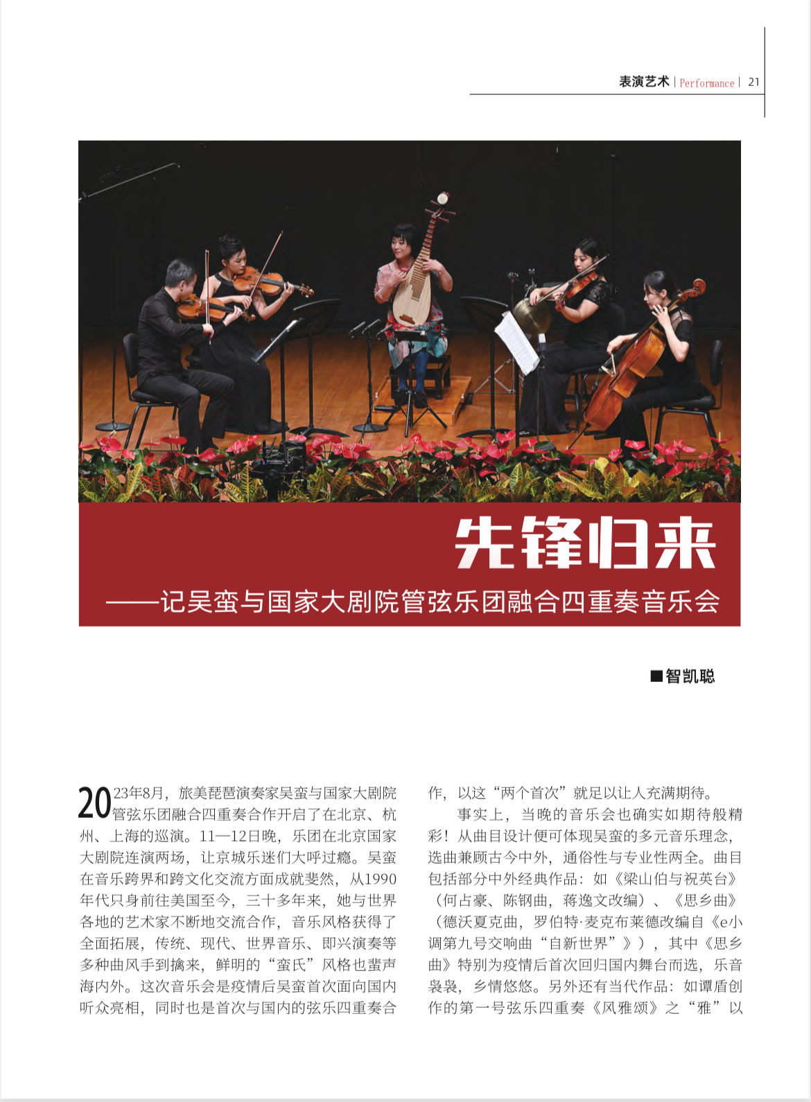 人民音樂:先鋒歸來 ——記吳蠻與國家大劇院管弦樂團融合四重奏音樂會
