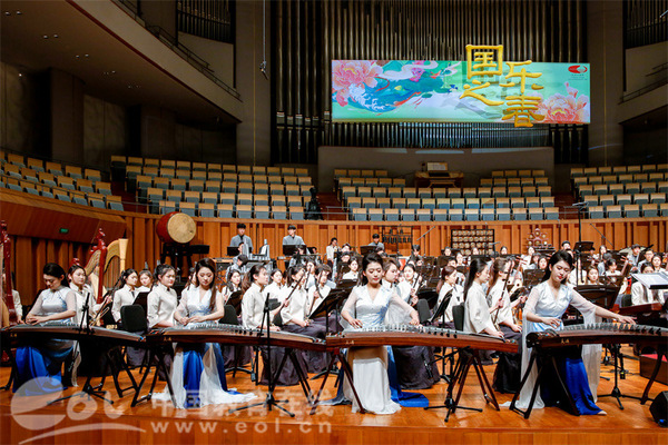 云水縹緲、峰巒疊翠,柳綠花紅、古塔余暉……“淡妝濃抹總相宜”的江南春色,總是令人心馳神往。4月11日晚,由浙江音樂學(xué)院民族樂隊學(xué)院組成的大型民族樂團(tuán)來到北京,登上國家大劇院的舞臺,參加第二屆“國樂之春”民族音樂節(jié),以“大樂”奏響“永和”,用國樂音韻演繹中華民族現(xiàn)代文明,并以富有浙江區(qū)域特色的民族音樂作品展示江南歷史人文風(fēng)貌和現(xiàn)代化發(fā)展進(jìn)程,也把浙江音樂學(xué)院的發(fā)展改革成果及當(dāng)代青年對民族音樂傳承發(fā)展的思考,呈現(xiàn)于首都觀眾面前。