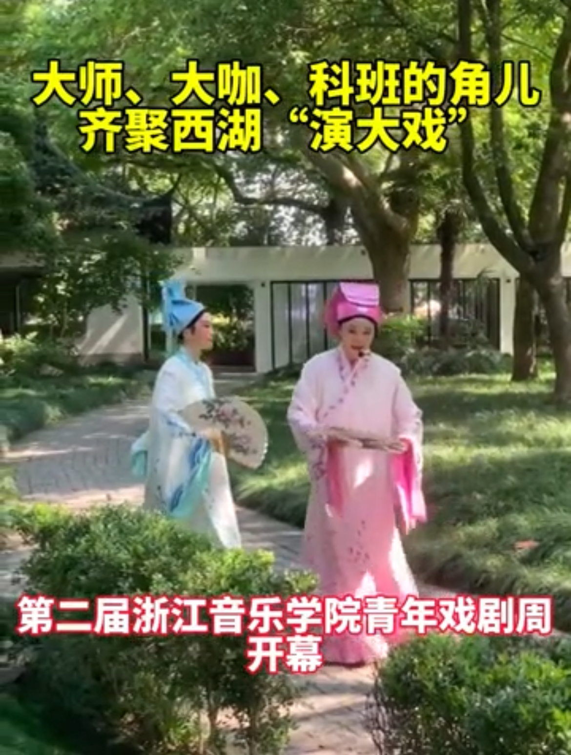 5月14日上午,第二屆浙江音樂學(xué)院青年戲劇周在杭州西湖涌金池畔的西湖天地舉行啟動(dòng)儀式。數(shù)十名戲劇系學(xué)生身著戲裝,以快閃形式出現(xiàn)在西湖邊,他們分別演繹了昆曲、越劇等經(jīng)典劇目中的唱段,吸引了眾多游客驚喜圍觀。