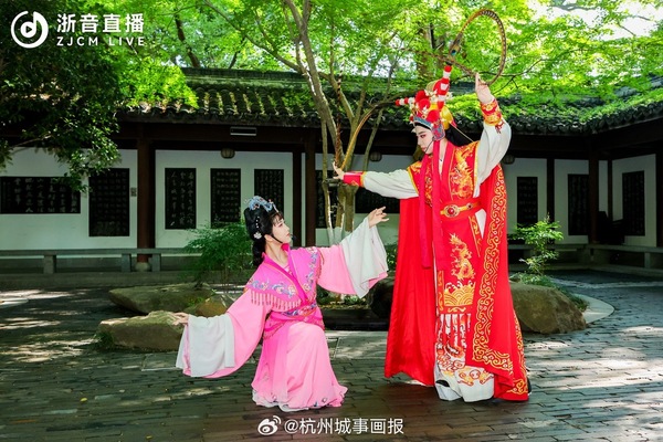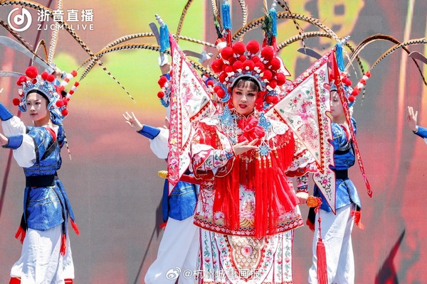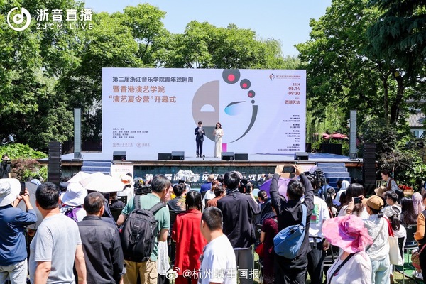 5月14日上午,第二屆浙江音樂(lè)學(xué)院青年戲劇周在杭州西湖涌金池畔的西湖天地舉行啟動(dòng)儀式。數(shù)十名戲劇系學(xué)生身著戲裝,以快閃形式出現(xiàn)在西湖邊,他們分別演繹了昆曲、越劇等經(jīng)典劇目中的唱段,吸引了眾多游客驚喜圍觀。