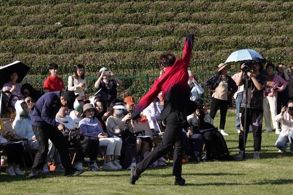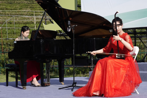 樂聲裊裊,茶香陣陣。昨天傍晚,在茶園被夕陽籠罩之際,一場別致的草坪音樂會在西湖區(qū)轉(zhuǎn)塘街道何家村浪漫上演,來自浙江音樂學(xué)院的師生們以鋼琴演奏、歌曲聯(lián)唱、舞蹈表演等形式,為當(dāng)?shù)卮迕駧砀哐潘囆g(shù)的視聽享受。