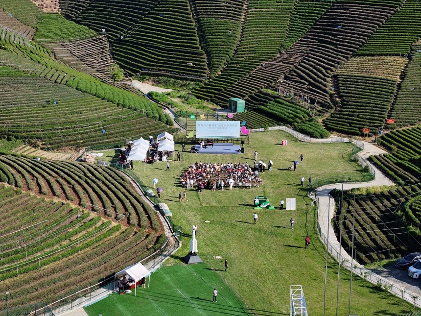 天色尚早,村民們就圍在草坪旁,翹首以盼家門口的藝術(shù)盛宴。音樂會的開場節(jié)目,是由村民演唱、學生伴舞,浙音作曲與指揮系為何家村量身打造的村歌《美麗何家村》。這首歌不僅展現(xiàn)了何家村的美麗風光,更是校地藝術(shù)共建、文藝助力鄉(xiāng)村振興的生動寫照。“在我們自己的茶園里唱響自己的家,這個感受太棒了!”何家村村民、音樂會參與者徐慶祥激動地說。