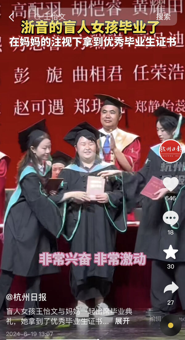 杭州日報:浙音的盲人女孩畢業(yè)了