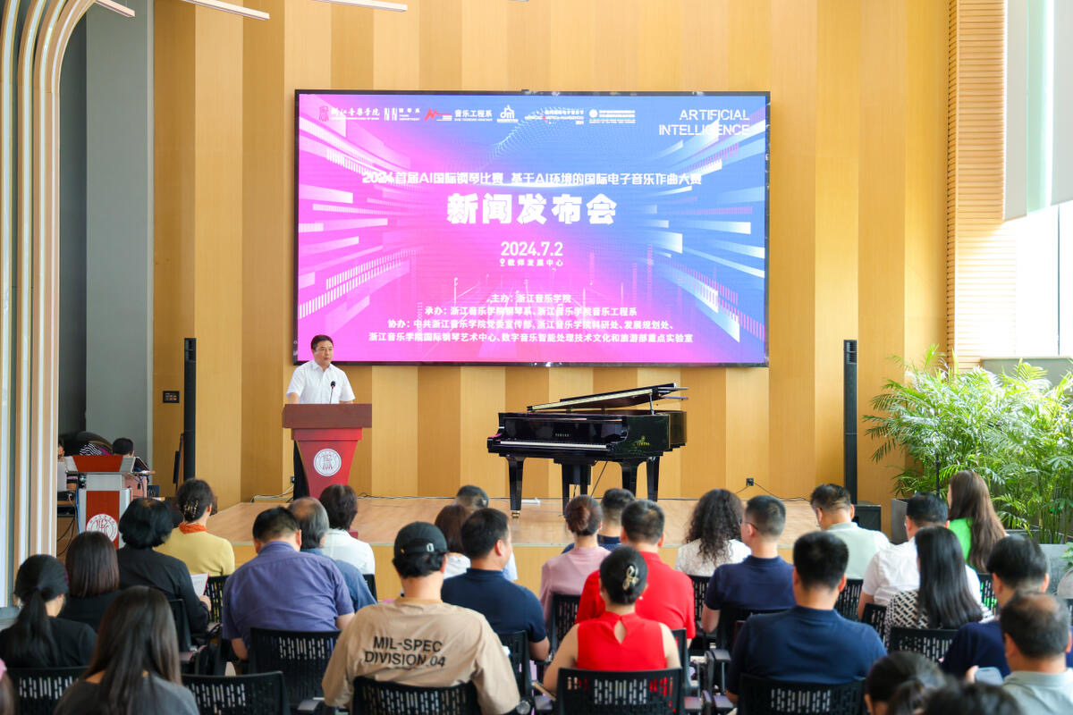 7月2日,2024首屆Al國(guó)際鋼琴比賽、基于AI環(huán)境的國(guó)際電子音樂(lè)作曲大賽新聞發(fā)布會(huì),在浙江音樂(lè)學(xué)院教師發(fā)展中心舉行。數(shù)智時(shí)代下,關(guān)于“AI+藝術(shù)”發(fā)展前沿的“奇思妙想”,在發(fā)布會(huì)上揭開(kāi)了一角面紗。