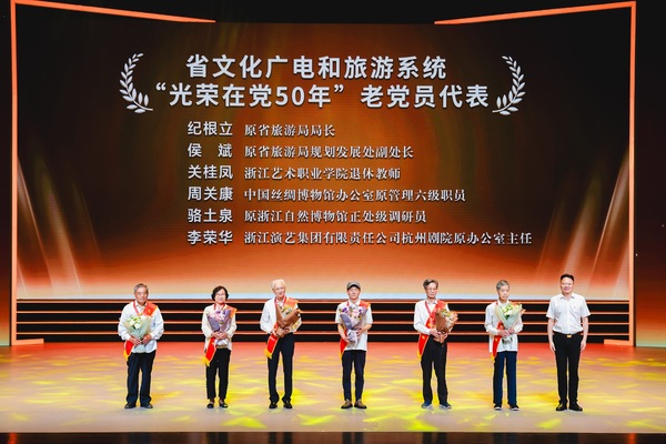 演出前,舉行了省級(jí)文化廣電和旅游廳系統(tǒng)“兩優(yōu)一先”、先鋒支部頒獎(jiǎng)儀式,省文化廣電和旅游廳黨組書記、廳長(zhǎng)陳廣勝為老黨員代表頒發(fā)“光榮在黨50年”紀(jì)念章,代表廳黨組向6位“光榮在黨50年”的老黨員致以崇高敬意,向受到表彰的先進(jìn)集體和優(yōu)秀個(gè)人表示熱烈祝賀,向廳系統(tǒng)廣大黨員致以節(jié)日的問候。