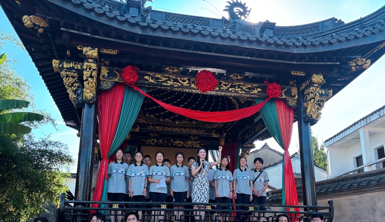 活動(dòng)的高潮出現(xiàn)在《黃酒文心》的演唱環(huán)節(jié)。在浙江音樂(lè)學(xué)院聲歌系大學(xué)生的熱情指導(dǎo)下,隊(duì)成員們登上古色古香的戲臺(tái),演繹了這首寓意深遠(yuǎn)的歌曲?!饵S酒文心》以其獨(dú)特的藝術(shù)手法,將江南的美景、人情的溫暖以及深厚的文化底蘊(yùn)巧妙融合,通過(guò)歌聲傳達(dá)給在場(chǎng)的每一個(gè)人,讓人們仿佛能品嘗到黃酒的醇香,感受到了小鎮(zhèn)背后的歷史厚重與文化深邃。