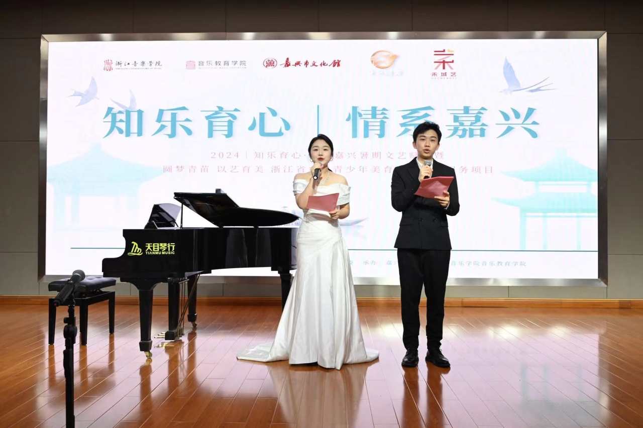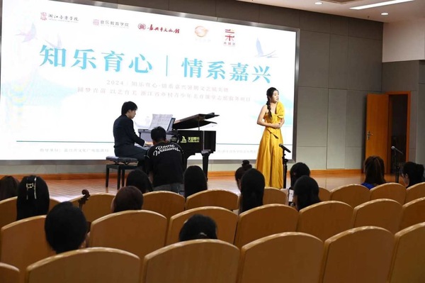 今天下午,在嘉興市圖書(shū)館二樓報(bào)告廳,由嘉興市文化館和浙江音樂(lè)學(xué)院音樂(lè)教育學(xué)院舉辦的“2024知樂(lè)育心·情系嘉興”暑期文藝賦美暨“圓夢(mèng)青苗以藝育美”浙江省鄉(xiāng)村青少年美育課堂志愿服務(wù)項(xiàng)目,在獨(dú)唱表演《越人歌》中緩緩拉開(kāi)帷幕。