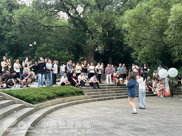 青年學(xué)子在東湖景區(qū)的核心區(qū)域——戲臺(tái)、九曲橋及湖心亭進(jìn)行了戲曲專場(chǎng)演出。演出匯聚了經(jīng)典戲曲選段,演員們以精湛的技藝、飽滿的情感,展現(xiàn)了戲曲藝術(shù)的獨(dú)特魅力,贏得了現(xiàn)場(chǎng)觀眾的陣陣掌聲與高度贊譽(yù)。